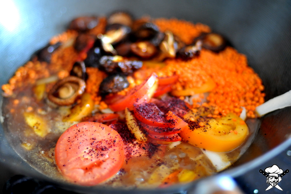 PIRACKI BIGOS SKŁAD: CEBULA 2 SZT KAPUSTA KISZONA 1 KG KAPUSTA BIAŁA 500 GR GRZYBY SUSZONE SOLIDNA GARŚĆ PIECZARKI 10 SZT TOFU WĘDZONE ALBO GYROS ROŚLINNY 1 OP ALBO KOTLET SOJOWY 1 OP ŚLIWKI WĘDZONE GARŚĆ ORZECHY WŁOSKIE GARŚĆ LIŚĆ LAUROWY 3 SZT ZIELE ANGIELSKIE 5 SZT KULKI JAŁOWCA 5 SZT PRZECIER POMIDOROWY MAŁY SŁOIK 200 GR PRZYPRAWY: CYNAMON IMBIR JAK LUBIMY TO CHILI ROZMARYN TYMIANEK SOS SOJOWY SÓL PIEPRZ WYKON: GRZYBY ZALEWAMY WRZĄTKIEM I ODSTAWIAMY SIEKAMY: CEBULĘ W PIÓRA, KAPUSTĘ, PIECZARKI W PLASTRY DO GARA: Z: OLEJ M: CEBULA Z: PIECZARKI, GRZYBY Z: KAPUSTA, CYNAMON M: OSTRE PRZYPRAWY W:…