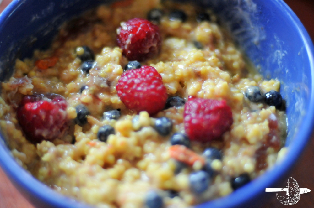 Generalnie najlepiej jeść ciepłe śniadania. Idealna jest jaglanka, owsianka, ryż. Gotujemy wodę dolewamy mleko roślinne (ryżowe, sojowe, owsiane etc) i pestki typu żurawina, słonecznik, dynia, płatki migdałów (możemy podprażyć), dodajemy umyty ryż, kaszę jaglaną etc, obieramy owoce i w 3/4 miękkości wrzucamy do garnka. Obrane owoce możemy udusić w woku z cynamonem, miodem, imbirem i wrzucamy do reszty. Dodajemy soli do smaku. Do picia możemy zblendować banany z mlekiem roślinnym, pulpą mango lub przyrządzić zielony koktajl z świeżej zieleniny ze słonecznikiem bardziej wytrawnie.