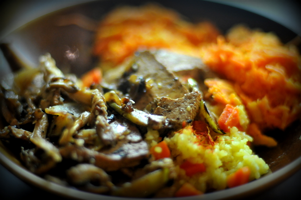 RYŻ JAŚMINOWY Z MARCHEWKĄ NA KURKUMIE + SZAFRAN INDONEZYJSKICEBULA BROKUŁ BOCZNIAK IMBIR PIEPRZ KAJEŃSKI TOFU SOS SOJOWY