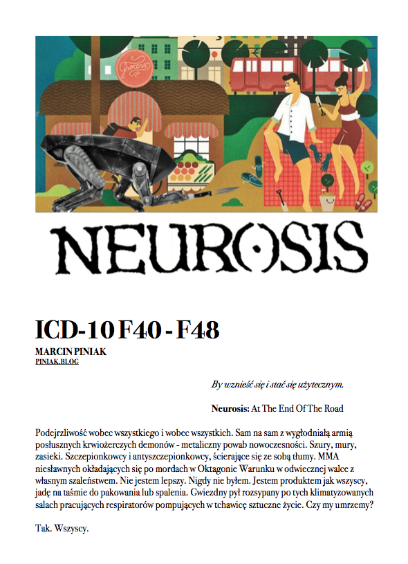 Kto mi to zrobił? Kto pozbawił mnie wiary i nadziei? Kto odebrał lepsze i bezpieczne jutro? Kto mnie umasowił pod osłoną nocy niepoczytalności, podłączył pod te wszystkie aplikacje, te uśmieszki, łapki machające, te wrrr, kto sprawił, że w tak krótkim czasie wszystko straciło większość znaczenia, kto sprawił, że opowieść jest ważniejsza od treści, a sama treść nic już nie znaczy. Kto kurwa to zrobił?